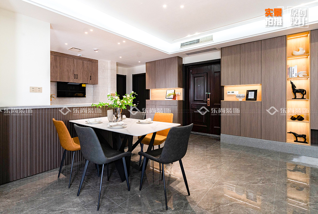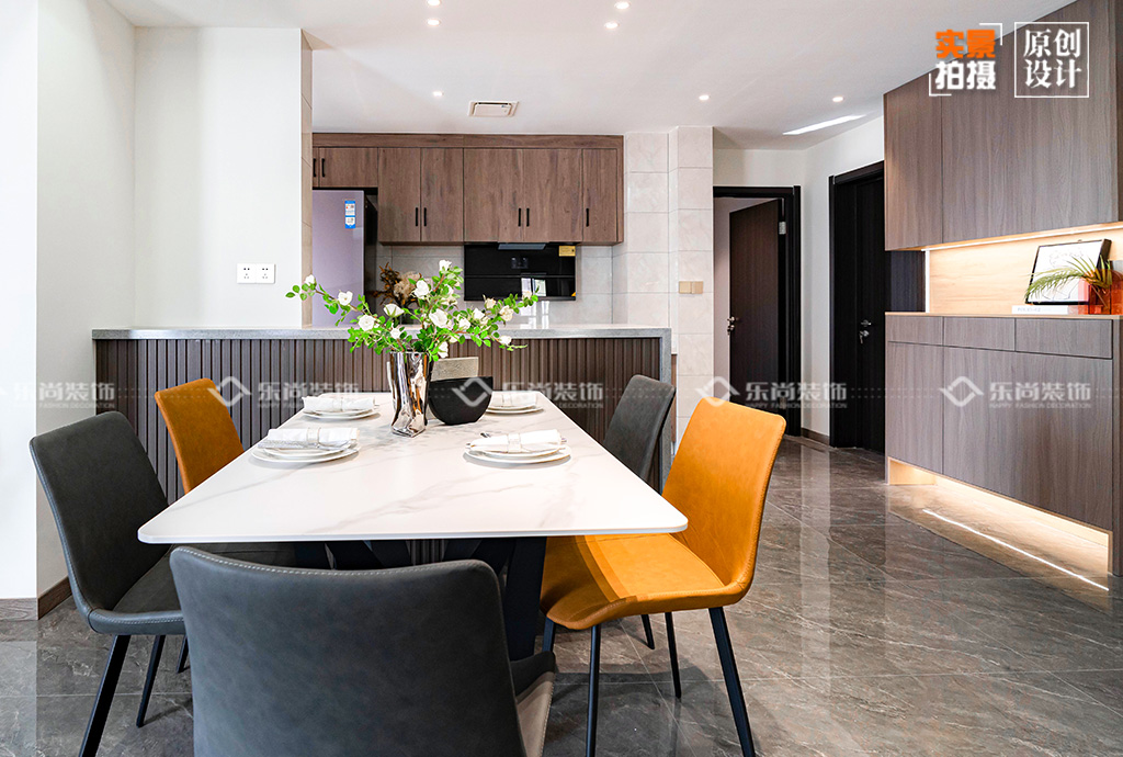 2、半开放式的厨房和餐厅相连,让空间不再局促,增加整体空间感。