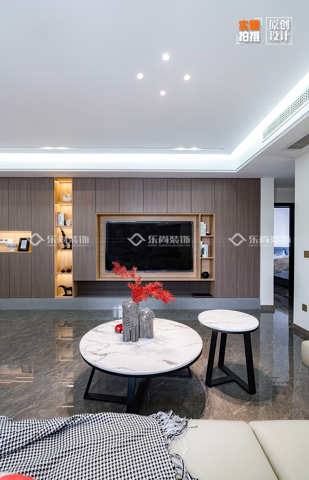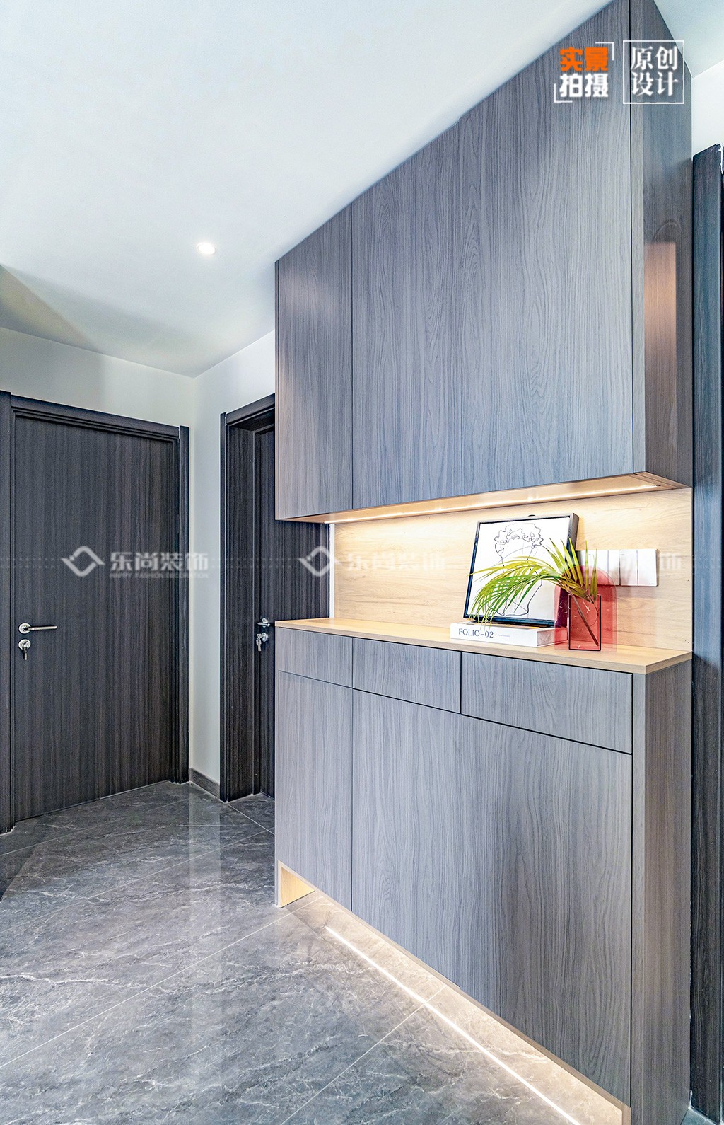 4、全屋秉承极简的设计基调,黑白灰为主色调,无主灯加上大面积的柜体收纳,打造舒适自然的空间。